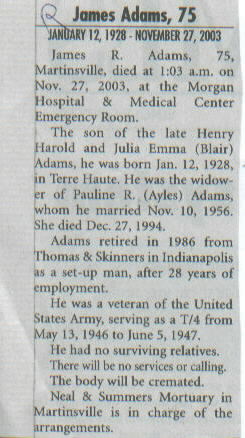| Other | Age 75. Veteran of the U.S. Army, serving as a T/4 from May 13, 1946 to June 5, 1947. |
