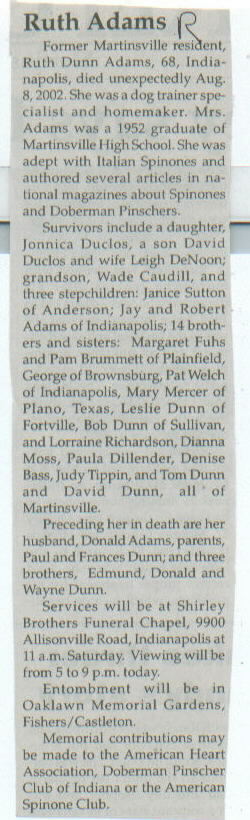 | Survived By | Daughter, Jonnica Duclos; son, David Duclos and wife Leight DeNoon; grandson, Wade Caudill; 3 stepchildren, Janice Sutton, and Jay and Robert Adams; 14 brothers and sisters. |