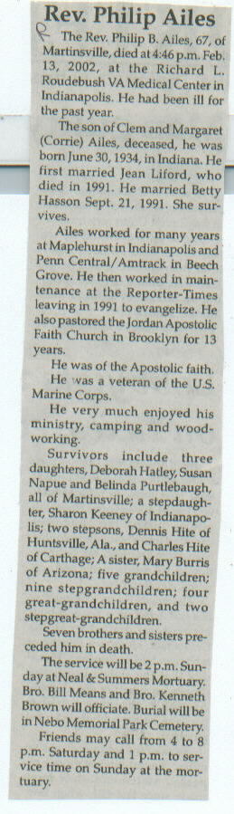 | Survived By | Widow, Betty Hasson; 3 daughters, Deborah Hatley, Susan Napue, and Belinda Purtlebaugh; stepdaughter, Sharon Keeney; 2 stepsons, Dennis and Charles Hite; sister, Mary Burris; 5 grandchildren; 9 stepgrandchildren; 4 great-grandchildren. |