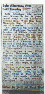 | Survived By | Son, Elliott Franklin; stepson, Harold Albertson; 4 grandchildren; 2 brothers, William and Allie Orvis. |
