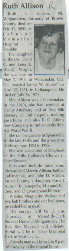 Survived By Three sons, Richard, Marvin, and John D. Allison; daughter, Erma J. Allison; 14 grandchildren; 25 great-grandchildren.