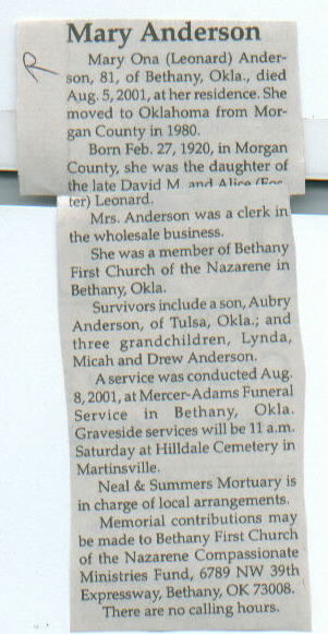 Anderson, Mary Ona