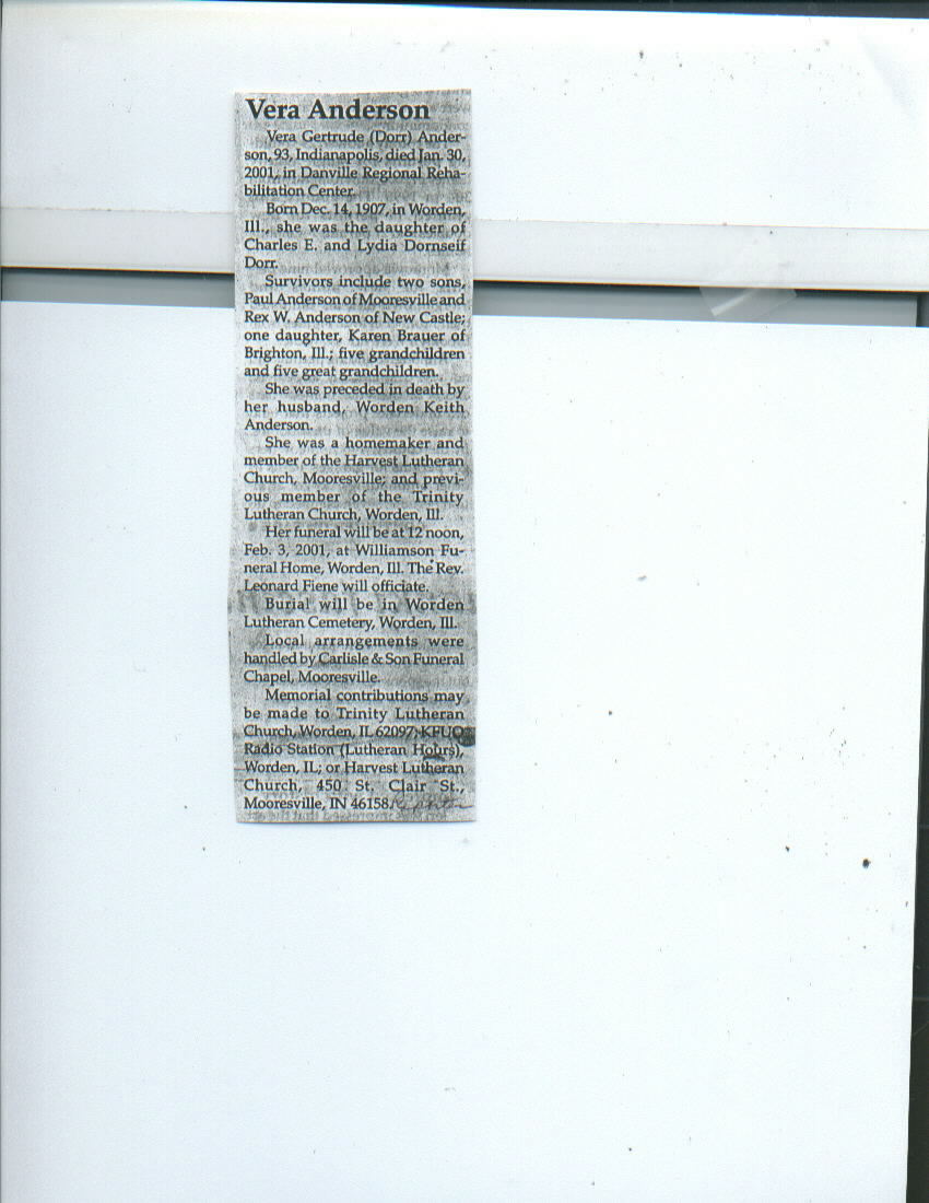 Survived By Sons, Paul and Rex W. Anderson; daughter, Karen Brauer; 5 grandchildren; 5 great-grandchildren.