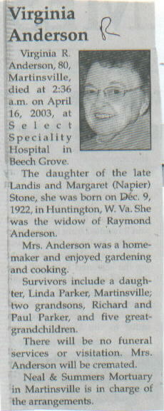 | Other | Age 80. Mrs. Anderson will be cremated. |