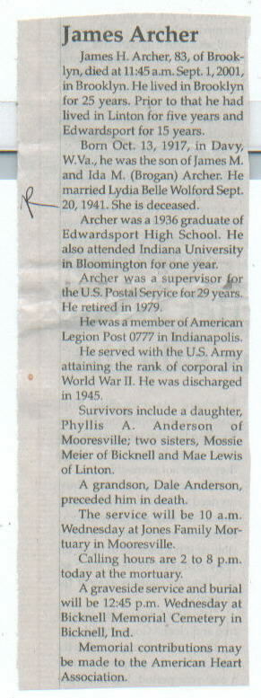 | Other | Preceded in death by parents, James M. and Ida M. (Brogan) Archer, and grandson, Dale Anderson. |
