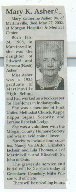 Survived By Four cousins, Nancy VanOsdol, Elizabeth Jackson, Lila Thomas, and Elizabeth St. John.
