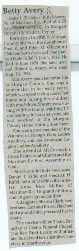 | Spouse | 1)Nyle Riffel, Jr.; 2) Robert E. Avery |