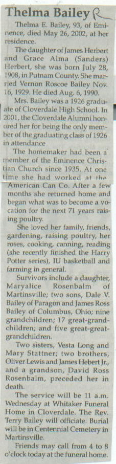 | Survived By | Daughter, Maryalice Rosenbalm; 2 sons, Dale V. and James Ross Bailey; 9 grandchildren; 17 great-grandchildren; 5 great-great-grandchildren. |