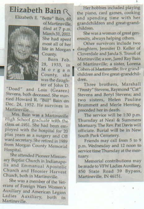 | Survived By | Spouse; 2 daughters, Jennifer D. Keller and Janda S. Troxel; son, Jared Ray Bain; sister, Lorena Cohen; 5 grandchildren; 5 great-grandchildren. |