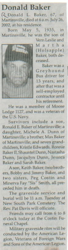 | Survived By | Son, Ronald E. Baker; daughter, Michele A. Dunn; brother, Max Baker; 7 grandchildren. |