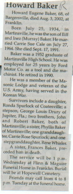 | Survived By | Daughter, Ronda Spurlock; stepson, George Louis Drury; 2 brothers, John and Robert Baker; sister, Phyllis Baker; granddaughter, Carrie Rose Spurlock; stepgranddaughter, Rene Whisler. |