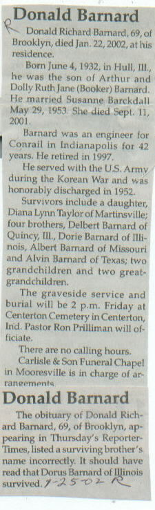 | Survived By | Daughter, Diana Lynn Taylor; 4 brothers, Delbert, Dorie, Albert, and Alvin Barnard; 2 grandchildren; 2 great-grandchildren. |