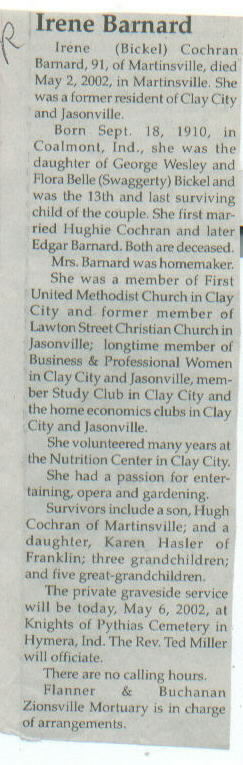 Survived By Son, Hugh Cochran; daughter, Karen Hasler; 3 grandchildren; 5 great-grandchildren.