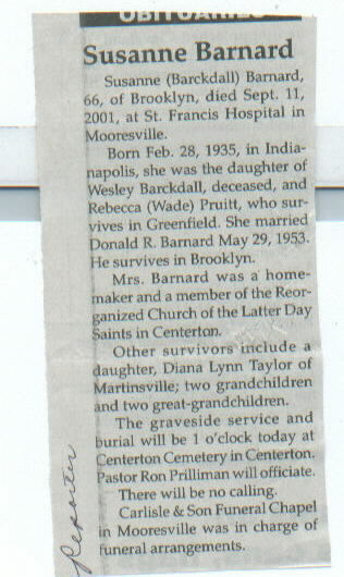 | Other | Preceded in death by father, Wesley Barckdall. |
