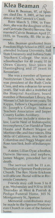 | Other | Preceded in death by parents, Roy and Gertrude (Smith) Stevens; sister, Lillian Dyar; brother, Darwin Stevens; nephew, James Magee. |