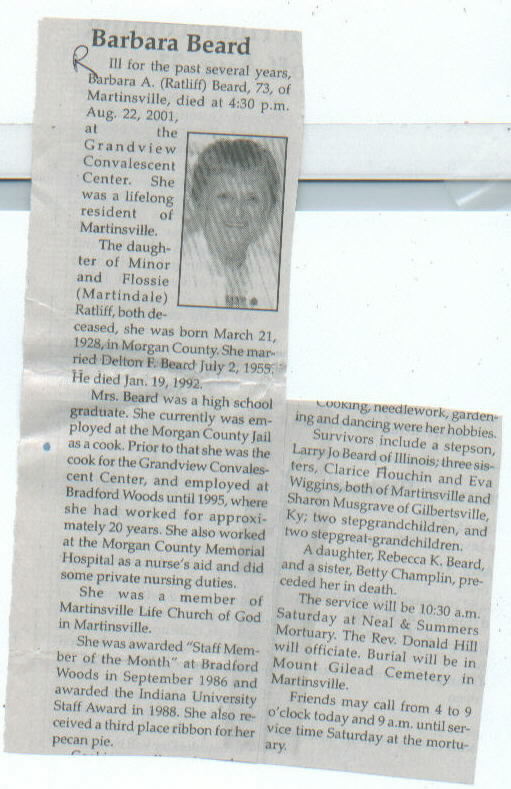 Other Preceded in death by parents, Minor and Flossie (Martindale) Ratliff; spouse; daughter, Rebecca K. Beard; sister, Betty Champlin.