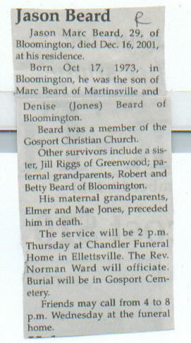 | Survived By | Parents, Marc Beard and Denise (Jones) Beard; sister, Jill Riggs; paternal grandparents, Robert and Betty Beard. |