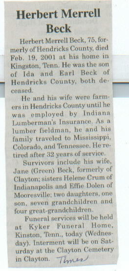 | Other | Age 75. Preceded in death by parents, Ida and Earl Beck. |