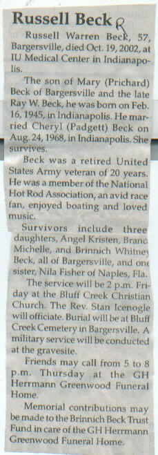 Survived By Widow; 3 daughters, Angel Kristen, Brandy Michelle, and Brinnich Whitney Beck; sister, Nila Fisher.