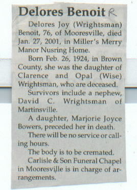 | Other | Preceded in death by parents, Clarence and Opal (Wise) Wrightsman; daughter, Marjorie Joyce Bowers. |