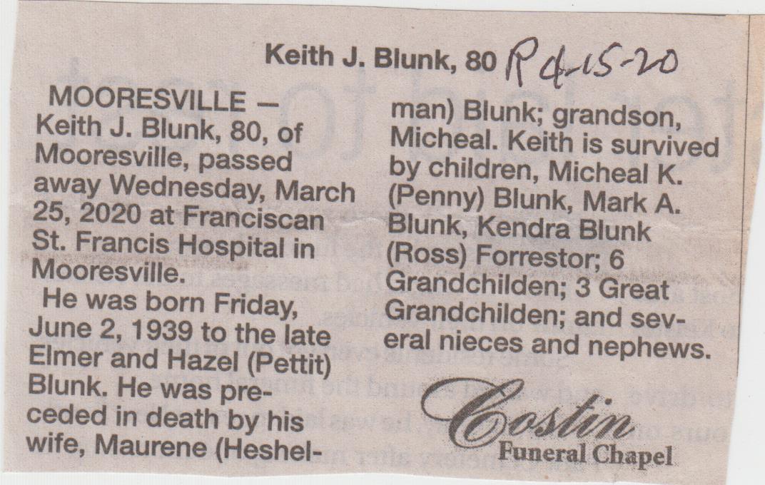 Other Son of the late Elmer and Hazel (Pettit) Blunk. Preceded in death by wife Maurene; grandson, Micheal.