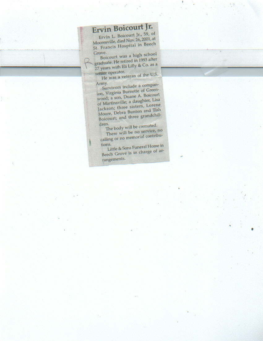 Survived By Companion, Virginia Burnett of Greenwood; son, Duane A. Boicourt of Martinsville; daughter, Lisa Jackson; sisters, Lorene Moore, Debra Bunton, and Tish Boicourt; 3 grandchildren.
