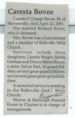| Survived By | Daughters, Caresta Wright, Sylvia German, and Donna Marie Benya; sister, Sylvia Earl; 16 grandchildren. |
