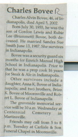 | Survived By | Widow; daughter, Anna K. Bovee; 2 brothers, Brian K. and Robert L. Bovee. |