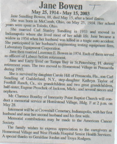 Survived By Daughter, Carole Hill; son, Carl Sundling; stepdaughter, Kathryn Taylor; 6 grandchildren; 2 great-grandchildren; half-sister, Eugene Proschek; several nieces and nephews.