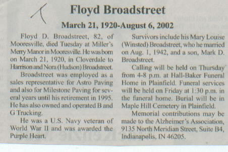 Other Age 82. U.S. Navy veteran of WW II; was awarded the Purple Heart.
