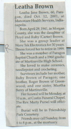 | Survived By | Mother, Ruby Brown; brother, Roger Brown; sister, Martha Berry. |