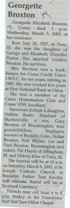 | Survived By | Spouse; daughter, Debbie Rader Rinehart; son, Gary Broxton; 4 grandchildren, Stephanie Ioaonni, and Nolan, Lee, and Paul Broxton; sisters, Pat Hayes and Deloris Klee. |