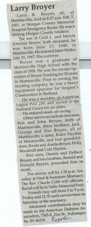 | Other | Preceded in death by parents, Cecil L. and Meryle (Owens) Broyer; sons, Dennis and Delbert Broyer; brothers, Ronald and Donald Broyer. |