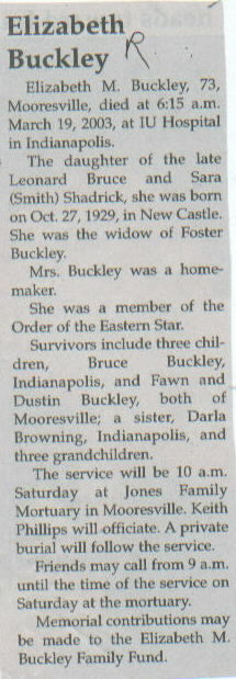 Survived By Three children, Bruce, Fawn, and Dustin Buckley; sister, Darla Browning; 3 grandchildren.