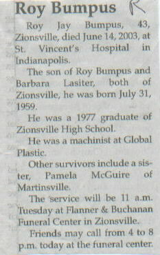 | Survived By | Parents, Roy Bumpus and Barbara Lasiter; sister, Pamela McGuire. |