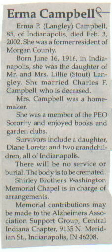 | Survived By | Daughter, Diane Loretz; 2 grandchildren. |