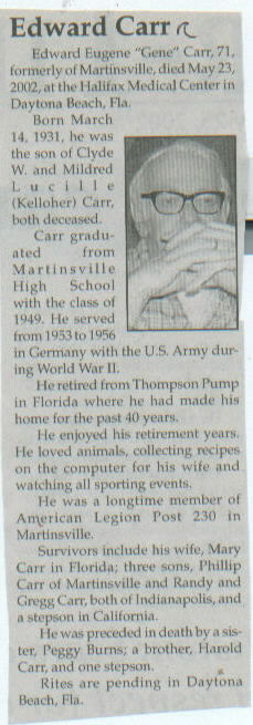 | Survived By | Widow; 3 sons, Phillip, Randy, and Gregg Carr; stepson in California. |