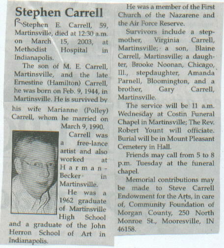 Survived By Widow; stepmother, Virginia Carrell; son, Blaine Carrell; daughter, Brooke Noonan; stepdaughter, Amanda Parnell; brother, Gary Carrell.