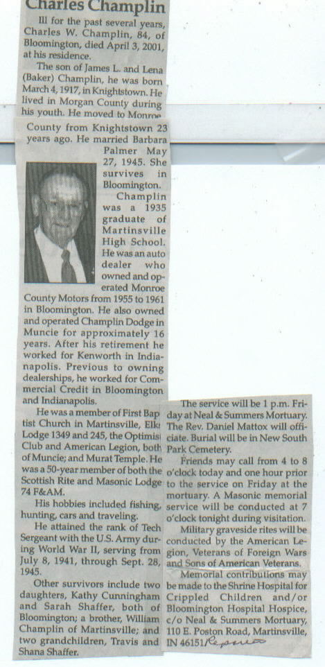 | Other | Preceded in death by parents, James L. and Lena (Baker) Champlin. U.S. Army veteran of World War II. |