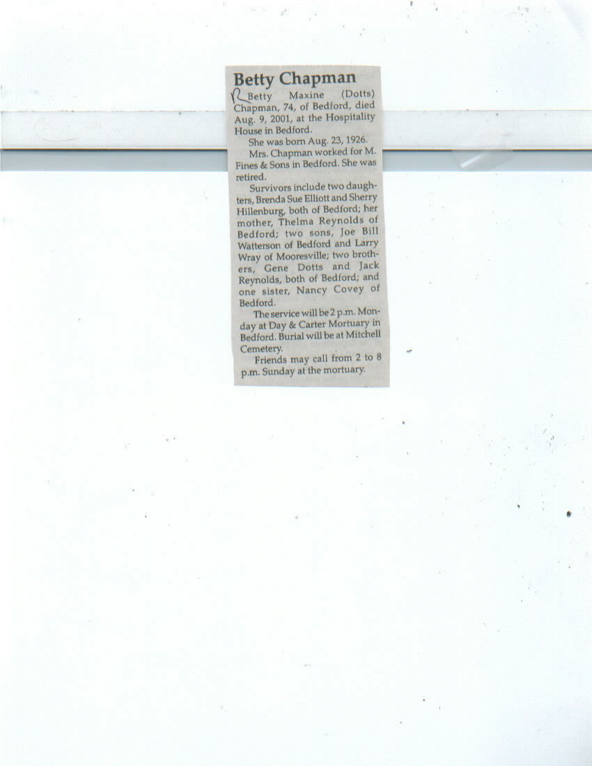 Survived By Mother, Thelma Reynolds; daughters, Brenda Sue Elliott and Sherry Hillenburg; sons, Joe Bill Watterson and Larry Wray; brothers, Gene Dotts and Jack Reynolds; sister, Nancy Covey.