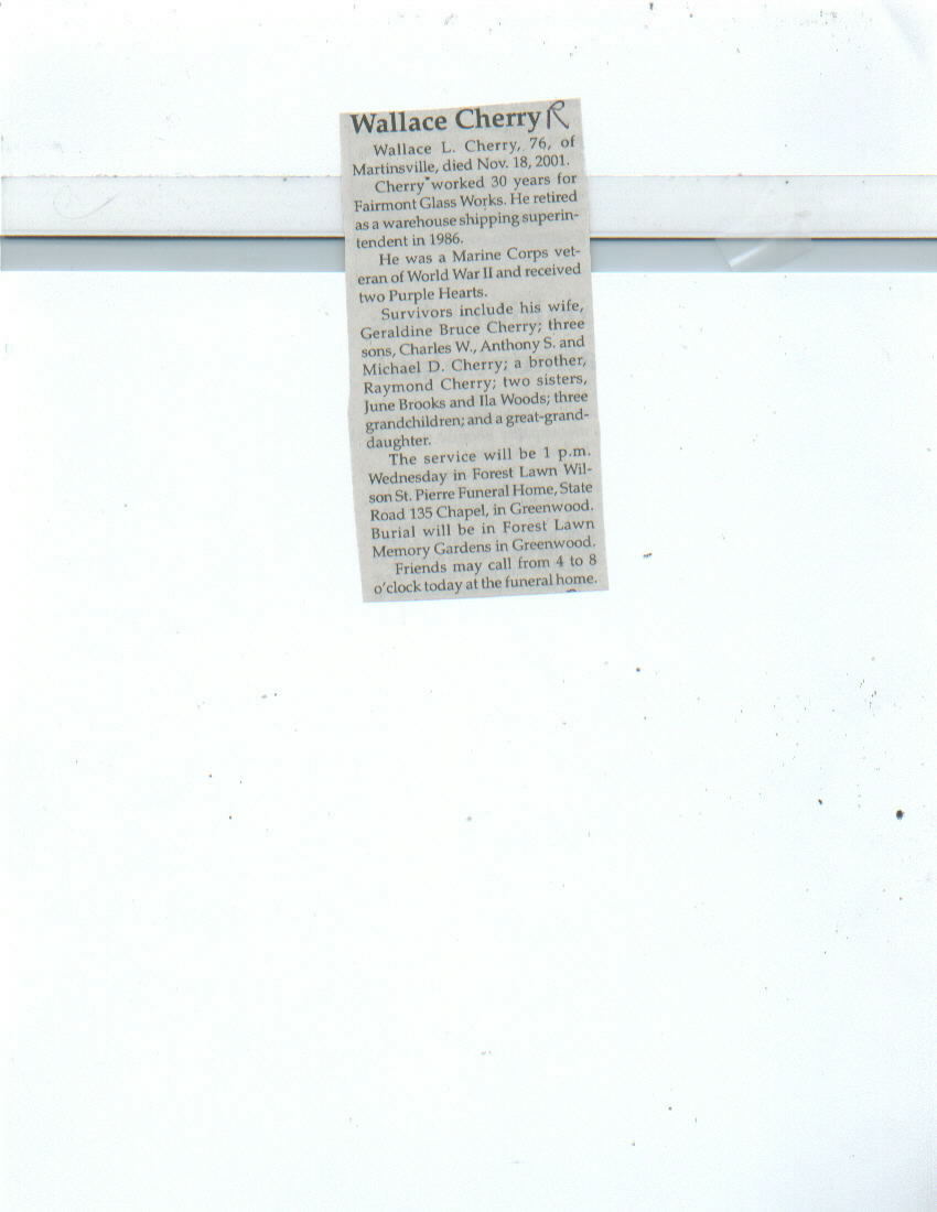 | Survived By | Spouse; sons, Charles W., Anthony S., and Michael D. Cherry; brother, Raymond Cherry; sisters, June Brooks and Ila Woods; 3 grandchildren; 1 great-granddaughter. |
