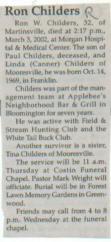 Survived By Mother, Linda (Canner) Childers; sister, Tina Childers.