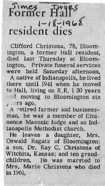 Other Age 78. Former resident of Hall. Died in Bloomington.