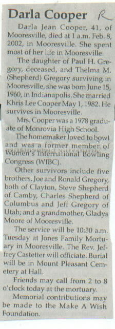 | Survived By | Spouse; mother, Thelma M. (Shepherd) Gregory; 5 brothers, Joe and Ronald Gregory, Steve and Charles Shepherd, and Jeff Gregory; grandmother, Gladys Moore. |