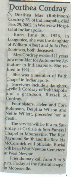 Survived By Daughter, Lyelle J. Cordray; grandson, Russell S. Cordray.