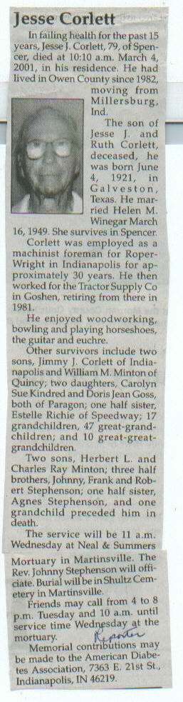 Other Preceded in death by parents, Jesse J. and Ruth Corlett; sons, Herbert L. and Charles Ray Minton; 1 grandchild.