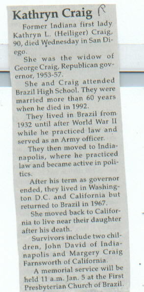 | Other | Preceded in death by husband, George Craig (Indiana Republican governor, 1953-57). |