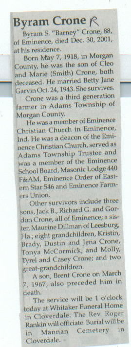 | Other | Preceded in death by parents, Cleo and Marie (Smith) Crone; son, Brent Crone. |
