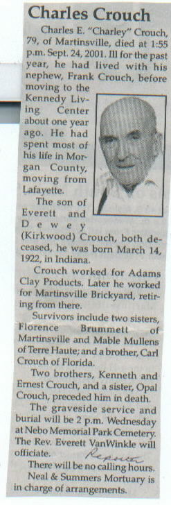 | Other | Preceded in death by parents, Everett and Dewey (Kirkwood) Crouch; brothers, Kenneth and Ernest Crouch; sister, Opal Crouch. |