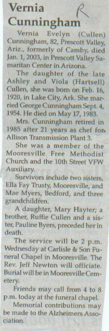 Other Preceded in death by a daughter, Mary Hayter; a brother, Ruffie Cullen; and a sister, Pauline Byers.